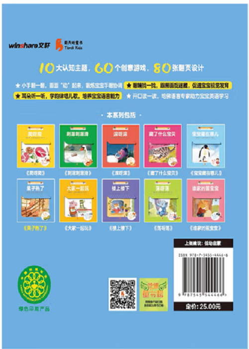 本套书语言优美,韵律感十足,故事有趣,能够让小宝宝在动手翻纸页的时候认识世界,感受到文字与图画的美。目标读者是0-3岁宝宝。本书通过一个个精巧的创意让宝宝在翻来翻去之中了解苹果树、枣子树、栗子树、香蕉树等植物的状态,以及它们结出的果实的样子。每一幅画中都有一只小动物,向往地望着成熟的果实,呼应宝宝发现的惊喜和认知的渴望,让宝宝得到阅读的共鸣,同时获得丰富的生活常识。