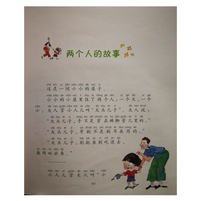 有一次,大头儿子差点儿把一枚分币吞进肚子里,小头爸爸很生气,拿出一把木尺,狠狠地打他手心,打得大头儿子直喊:“痛死了!痛死了!”