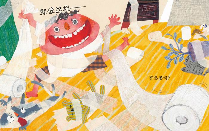 与《大卫,不可以》里的大卫同样调皮捣蛋的孩子,不同的是妈妈对干坏事的处理方式。儿子捧着书让我讲了好多遍,觉得那个捣乱的小男孩就是他自己啊!对我而言,儿子疯玩过后能够像书中男孩一样收拾一下是最好不过啦!