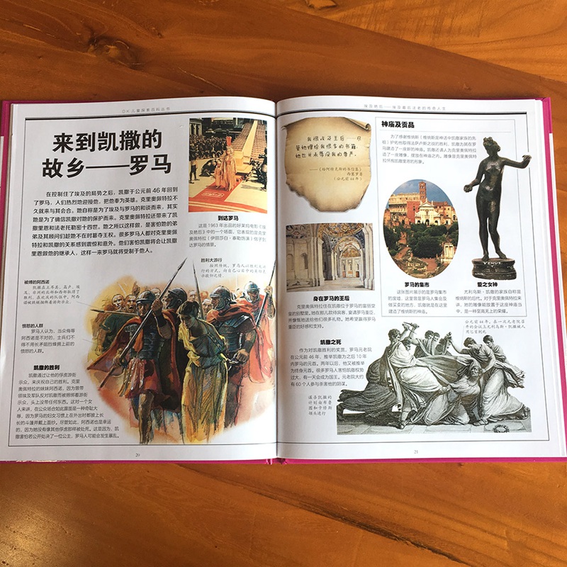 哥伦布为了能实现航海理想,多次写信请示的经历,让孩子学到自强不息的精神。对于褒贬不一的埃及艳后等历史人物,采取客观公正的态度来描述,让孩子从小学会用客观冷静的眼光看待周围的人和事。