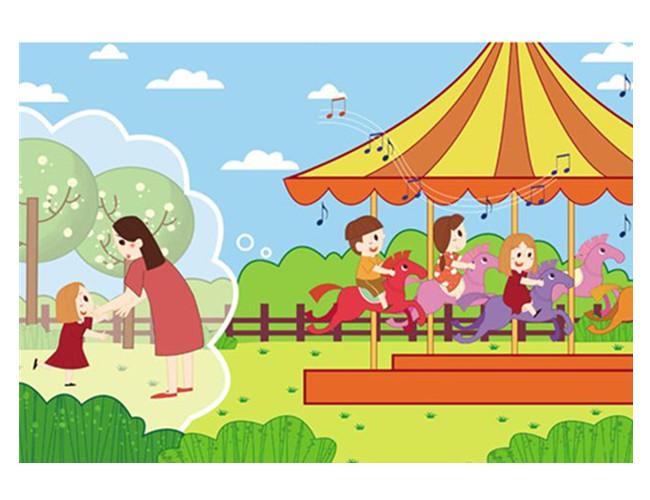 小朋友我们在游乐园玩耍时不要乱跑,玩滑梯的时候一定要小心,不要扭伤了脚,要排队滑下来,不可以从滑板方向爬上来;骑碰碰车时,速度不可以太快,这样容易撞到墙上,或者碰到其他小朋友。