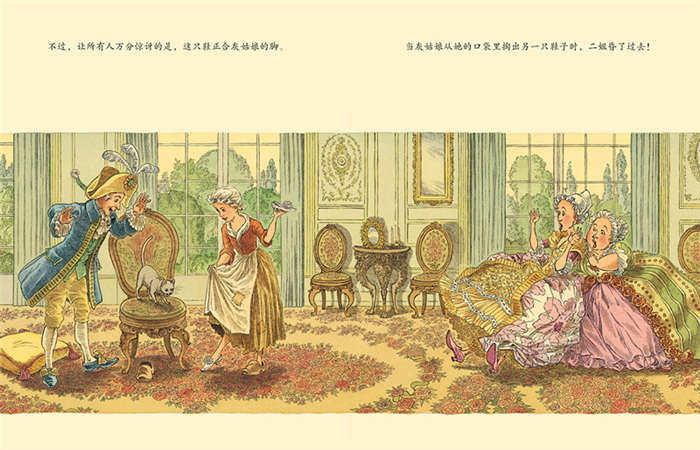 书中有作者对《灰姑娘》源流进行考证的文字,提到*早被文字记录下来的版本是中国的《叶限》(公元850年),麦克林托克在改编这个故事时,参照的是17世纪法国作家夏尔·佩罗的版本。