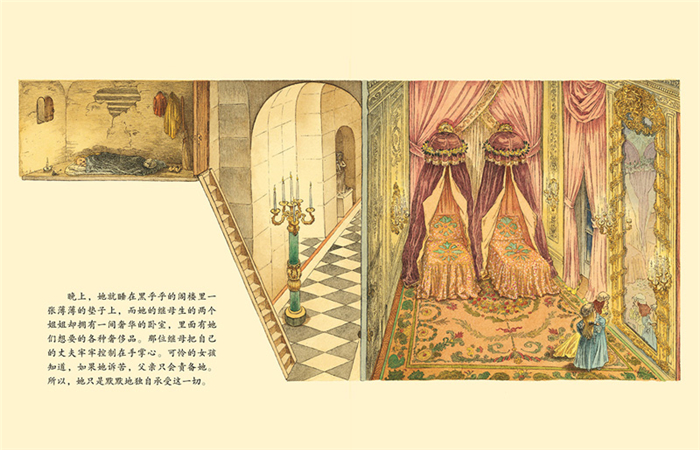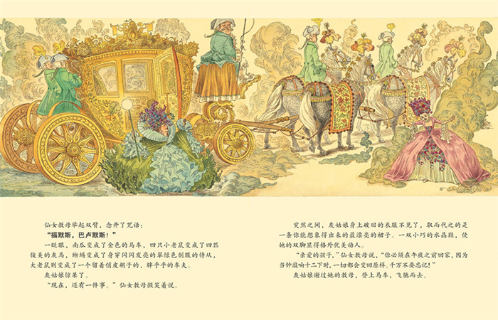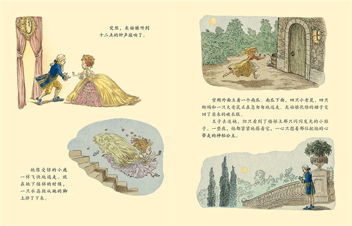 麦克林托克版本的《灰姑娘》,就如同一件温暖、幽默、充满细节的艺术品。书中的灰姑娘从不抱怨自己的命运,也不对人进行报复,它的内核是谦逊、美德、包容的力量。书中华丽的、经画家细致描摹的大场景图画是值得插画家借鉴的大师之作。