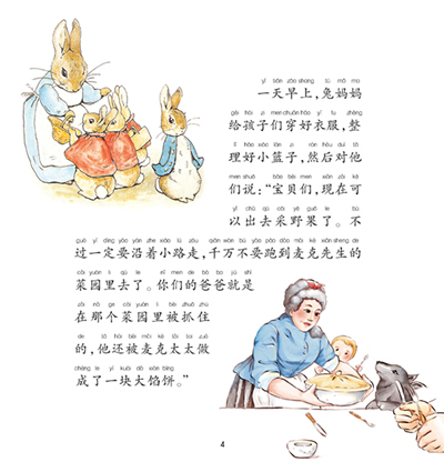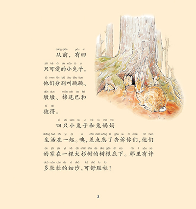 3.每天晚上我都会从“彼得兔”系列故事中挑选一篇读给我的女儿听。J·K·罗琳女士曾说,所有的孩子都应该熟读“彼得兔”系列中的每一个故事。——杰弗里斯(英国《卫报》专栏作家)