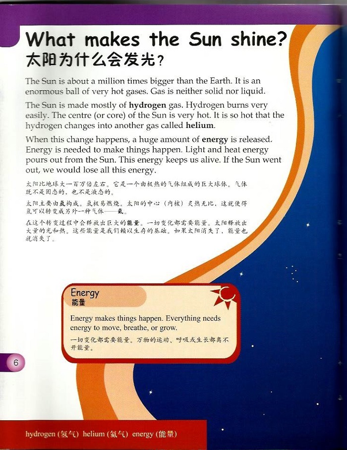 《当太阳熄灭时:太阳的能量》为“英国最具影响力的青少年科普读物”之一,中英双语版。它以精美的图片,简练的语言,生动的内容,惊人的想象,对于孩子们常提出的一些问题给出了简单而又清楚的回答,使青少年在不知不觉中了解和掌握基本的科学常识,启发青少年的想像力,激发青少年的探索欲,满足青少年的求知欲,有助于青少年自主学习和探索未知的科学世界。太阳是一颗恒星。它只是数十亿颗恒星中的一颗。在新的恒星不断诞生的同时,旧的恒星也在不断地消亡。如果有一天太阳不再升起,世界将会怎样呢?如果这颗中等规模的恒星停止了闪耀,又有谁会注意得到呢?