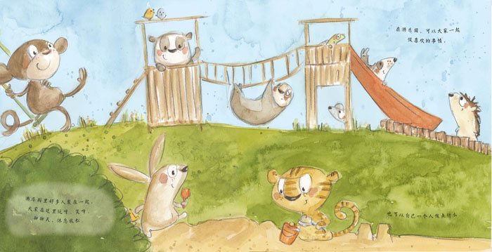《游乐园就像大丛林》用孩子们好奇的野生动物丛林,让孩子理解游乐园的世界,学会在那里与人相处,收获自己的快乐。