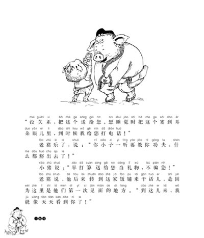 小猪说:“我也不知道什么地方卖飞机票,等找到地方咱们再给吧……您那‘钱’花起来多不方便哪,还得上秤去称。这儿正好有个银行,您进去换换!”