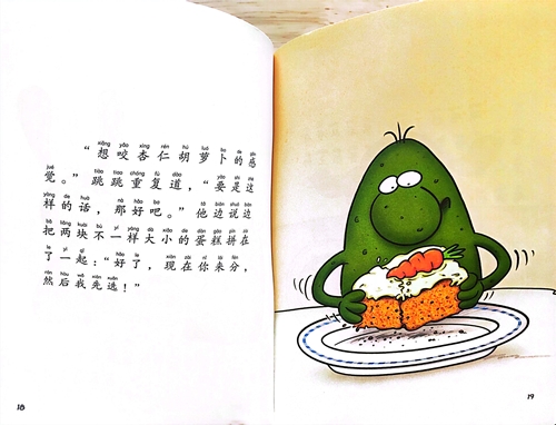 只剩下最后一块胡萝卜蛋糕了,蹦蹦和跳跳都迫不及待地想吃上一口。可是,蹦蹦觉得自己没有分到蛋糕上的杏仁胡萝卜,跳跳觉得自己分到的蛋糕比较小,到底怎么分才能让大家都满意呢?