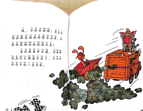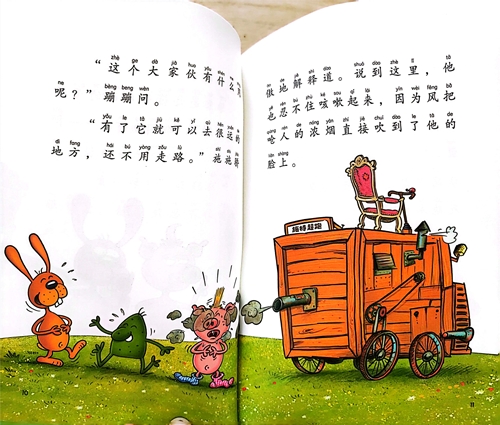 小猪施施有一辆威风的大跑车,但是这辆车开动时会咔哒作响,还会喷出呛人的黑烟。为了向施施证明环保的车子也可以很酷,蹦蹦和跳跳发明了一辆完全没有噪声,也不冒黑烟的胡萝卜赛车。他们到底是怎样做到的呢?