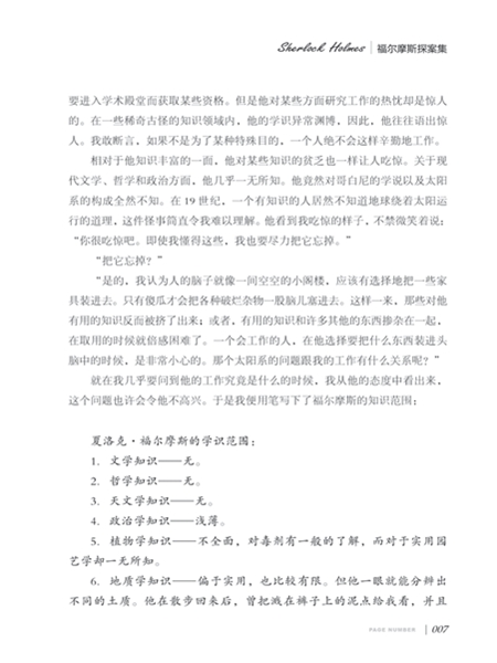 《福尔摩斯探案集》是英国著名侦探小说家柯南道尔的代表作,柯南道尔的侦探小蜕情节离奇曲折,以其缜密的逻辑进行严强的推理而破案,创立了侦探小说着重推理的流派,对后来流行的推理小说也产生了重要影响,他的作品也从侧面反映了当时资本主义社会的黑暗。在中国,《福尔摩斯探案集》是译本最多、销量最多的外国文学作品之一。