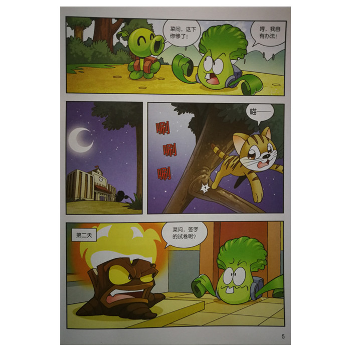 整套书采用了同学们喜闻乐见的漫画的形式,能够让同学们更轻松地阅读。更为新奇和难得的是,为了增添同学们学习成语的乐趣,这套书还以“植物大战僵尸2”中深受同学们喜欢的植物和僵尸的形象为主角,专门编撰了故事剧本,幽默、风趣地讲解每个成语的内涵。这样的方法当然是快乐而有效的。