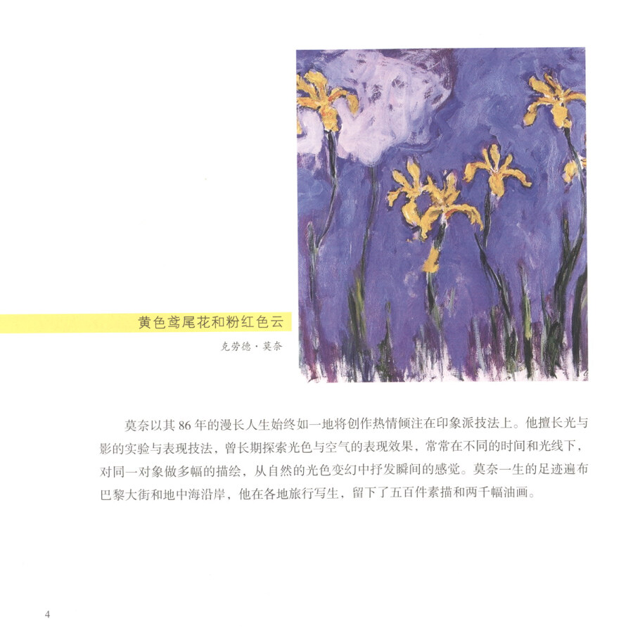 《我超喜爱的艺术启蒙故事绘本》通过五位在艺术史上最具代表性的大师:达·芬奇、梵·高、莫奈、塞尚、毕加索的故事,讲述了艺术大师们的思想和生活,使孩子们全面地了解一幅幅誉满全球的名画作品的魅力所在。这是一套为小读者们开启艺术之门的理想读物,在提升个人的艺术修养的同时提高个人艺术素养。《莫奈的故事》讲述了莫奈的生平以及他的著名画作。