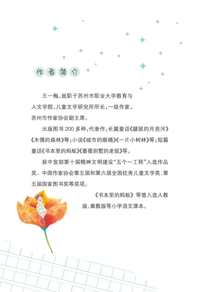 王一梅,就职于苏州市职业大学教育与人文学院,儿童文学研究所所长,一级作家,苏州市作家协会副主席。