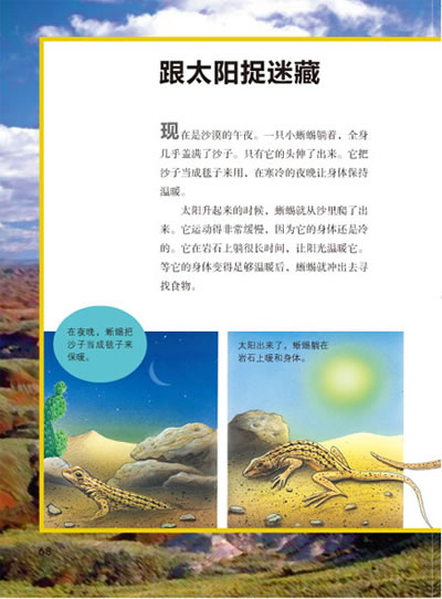 本书中有许多特色内容帮助你学习、掌握它。标着“全知道”的框子里有充满趣味的事实。找找在一个色球上面的“试一试”这些字眼。在它下面介绍的活动提供了一种更多地了解动物的办法。比如,你能够建一个蝙蝠窝,或者建自己的水族缸。