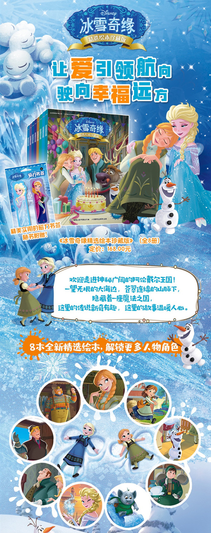 这是一本图书图画故事书。本书选取自迪士尼冰雪奇缘官方绘本中的精彩衍生故事,集中为小读者展示了艾莎、安娜以及她们和好朋友之间发生的新鲜好玩的趣事,如《奥肯的新发明》《神奇的水晶庆典》《雪宝的冰雪大冒险》《出海旅行》等,凸显主人公的勇气和智慧。本书画面细腻精美、文字表述生动流畅、整体设计清新简约,适合亲子共读。