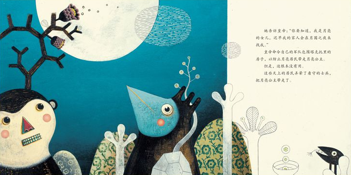 入选意大利“博洛尼亚国际儿童书插画展”故事改编自日本早的物语文学《竹取物语》,又名《辉夜姬》,是关于日本“富士山”的凄美传说。抽象派表现手法线条和几何图案的变形浓郁的民间叙事风格和现代绘画的装饰美感相结合文字与画面的叙事功能完美糅合