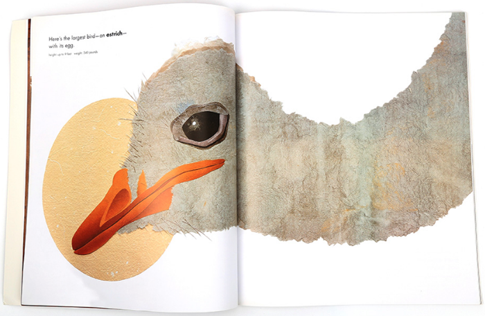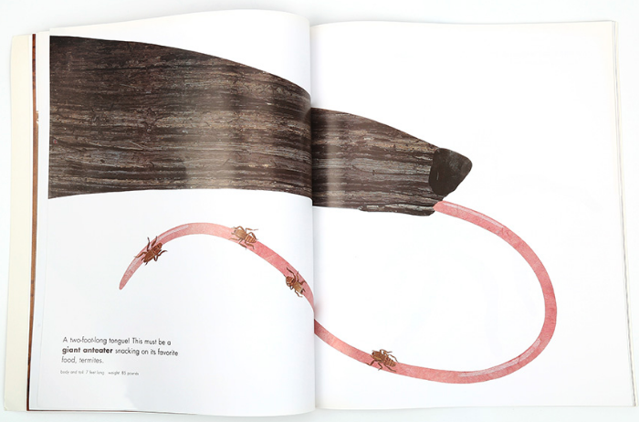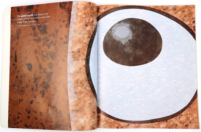 小朋友们喜欢认识不同种类的动物吗?相信小朋友们已经在各种各样的绘本上“见到”过很多动物:美丽的蝴蝶、呱呱叫的青蛙、在水里游来游去的鱼儿、有着长鼻子的大象和威猛的老虎等等。但孩子们知道这些动物的真实体型有多大吗?被放大或缩小了的动物出现在许多故事中,孩子们却只能够看到他们的形态和外表。但在《Actual Size》里,拼贴风格的动物插图与实际的大小是一致的喔。那么孩子们可以通过猩猩的大手掌判断它到底有多大,也可以知道世界上原来还有那么大的飞蛾。不仅如此,在书本的最后还有这些动物的全身图,加深孩子们对动物的印象。