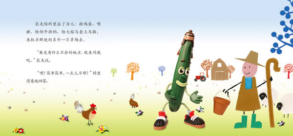 黄瓜科里来到农场,想帮助农夫做农活。接到任务后,科里觉得这些活儿太简单了!他到猪圈里摸鸡蛋,给大棕马挤奶,还把一群羊吓得跑没影儿啦……事情搞得一团糟!科里赶紧向农夫虚心请教,才顺利完成了任务。小朋友,当你有不懂的问题时,请一定要记得向有经验的人请教哟。