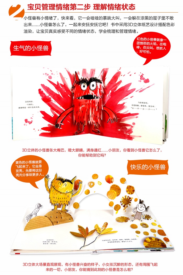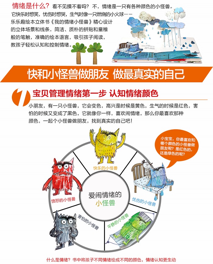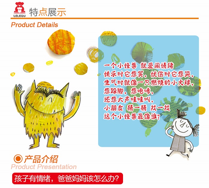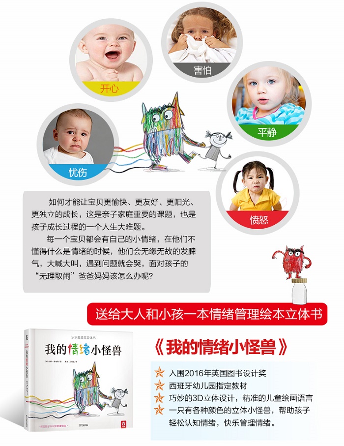 《我的情绪小怪兽》是西班牙幼儿园老师zui喜欢在情绪课程上使用的绘本。他们一致赞誉:这本书zui能让孩子认知情绪!《我的情绪小怪兽》和孩子一起认识心里的情绪小怪兽,直接呈现情绪管理zui基础也zui重要的能力元素——情绪觉察与辨识,让孩子在充满诗意的文字与艺术气息浓烈的画面中,自然而然地认识基本情绪并进行有效的疏导,陪伴孩子接纳所有感受,为幼儿的生活注入强大的力量,启动成长和学习的契机。