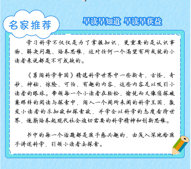本书通俗易懂、活泼生动的语言,由表及里、由浅入深地讲解海洋的知识,引领读者探索海洋最为惊险刺激的部分,在类似探险的旅途中学习更多的科学知识。