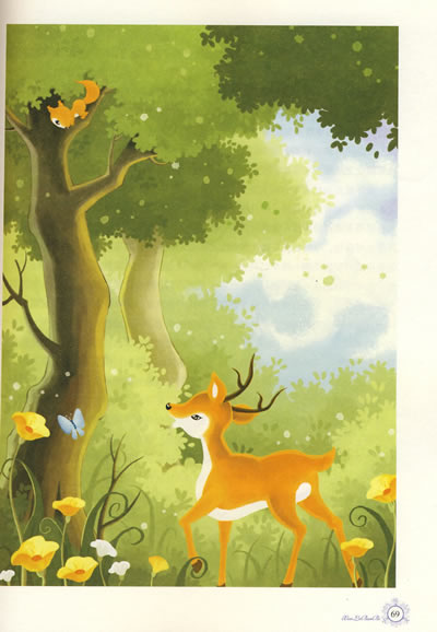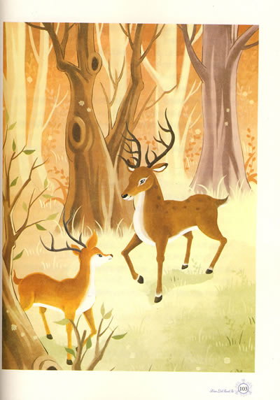 走在这里是多么惬意啊!温柔的树叶像爱抚他一样,一片接一片轻轻地掠过他的身体,然后再滑向一边。脚下的路虽然看起来被草木层层阻隔,走起来却十分通畅。整个森林里,小路纵横交错、四通八达。母亲似乎熟悉所有的路,每当斑比呆呆地站在茂密的草木前,像是面对一座不可逾越的绿墙时,母亲总是轻松地将他领到小路继续延伸的地方。