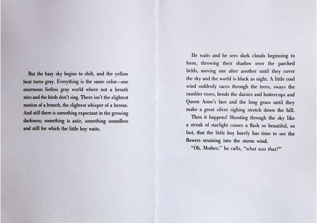 From the last moments of an oppressively hot day, to themoment a rainbow breaks out over the countryside, this CaldecottHonor book lyrically explores the impact of a storm.