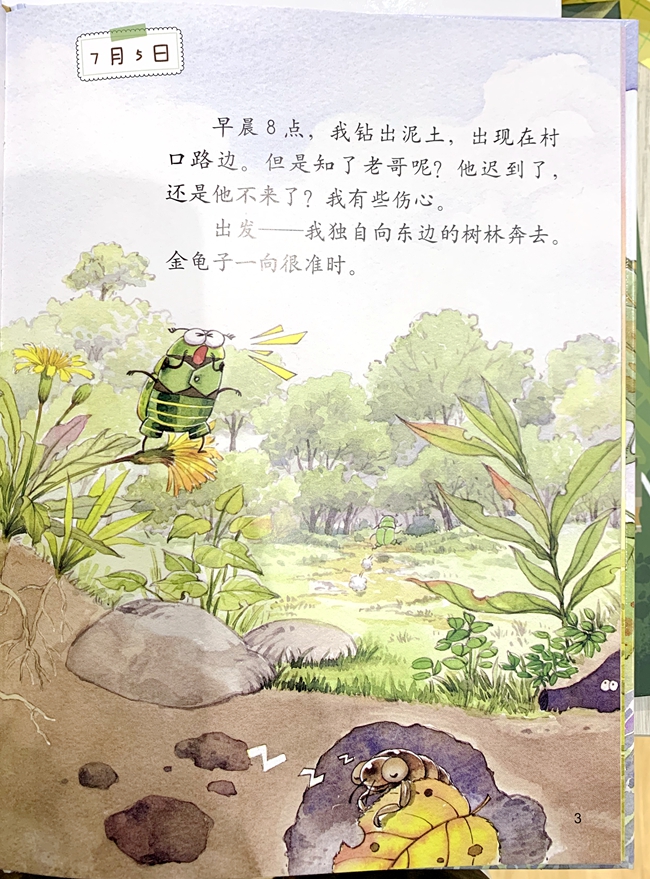 以日记的形式,通过金龟子的趣味讲述,展现了金龟子的各种特征和生活技能。包括金龟子幼虫在哪里生活,金龟子成虫又在哪里生活?金龟子喜爱吃什么?金龟子的天敌有哪些?金龟子在遇到危险时如何逃生?金龟子家族还有哪些成员?在嬉笑中,将有深度的知识点通过幽默的方式传达给孩子,让孩子在欢笑中,收获关于金龟子的基本知识,并认识了一个有趣可爱、乐观开朗的好朋友,激发孩子对大自然更多的好奇心,培养孩子乐观的性格和良好的社会交往能力。