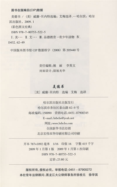 本书根据威廉·贝内特先生的思路,参考有关文章,重新进行编译加工。选材内容丰富多样,包括童话、寓言、诗歌、传说等,从责任、友谊、勇气、忠诚等多方面,展现了人类美德的光辉。