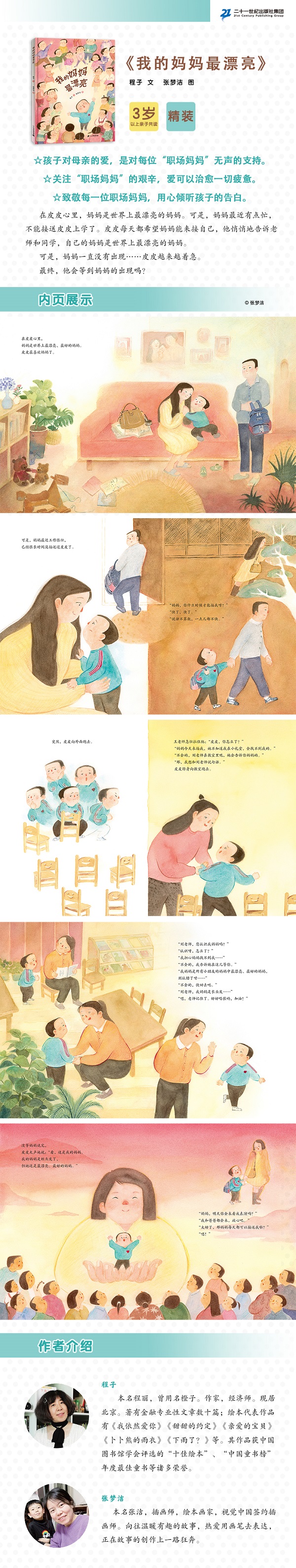《我的妈妈最漂亮》讲述了一个在当下社会非常普遍的问题,越来越多的父母需要兼顾家庭与工作,如何处理二者的关系?如何平衡孩子的需求与自身的工作?作者程子用平和的心态、细腻的视角切入,帮助我们在烦劳的工作中,发现闪光的融融爱意。也许,我们都需要慢下来,像书中的妈妈一样,倾听与感受来自孩子的暖心告白。
