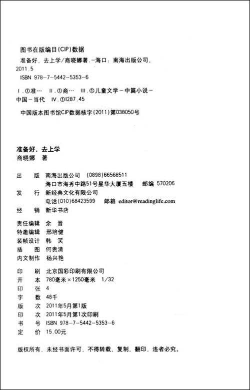 《准备好去上学》是一部充满趣味、活泼可爱的儿童小说。五岁的小女孩周佳彤,被爸妈亲切地称为“小朋友”。《准备好去上学》讲述的,就是“小朋友”的心理成长和生活故事。小朋友还在上幼儿园大班,但她很想上学,很想快快长大。小朋友也想系红领巾,想当小队长……小朋友有好多好多的向往。准备着上学的日子里,怀着小小兴奋的小朋友,会怎样面对那么多因为渴望上学而引起的小小烦恼和困惑呢?学前幼童成长过程中的美好、尴尬和烦恼,活灵活现,令人莞尔,引人深思,周佳彤因为准备上学而遇到的种种问题及其解决办法,能够给予即将上学的孩子以全方位的启发。