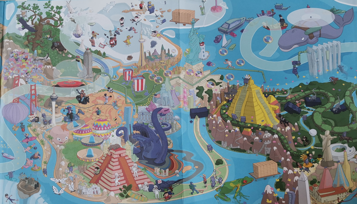 这是一本特别好玩的、格外耐看的书。跟随着奥拉老师班里的孩子们出现在未来时空中。在未来的每一页,小读者都能有新奇的发现,面对不同的挑战。在未来错综纷乱的世界里,小读者需要能找到被吸走的同学们和教室里的东西。东西找到之后,还需要在未来世界中认出各种标志性建筑和地区。除此之外,小朋友们还可以为同学们的这次冒险编个小故事呢,不仅可以跟好朋友一起编织他们的冒险旅行,还可以进行故事接龙大赛。