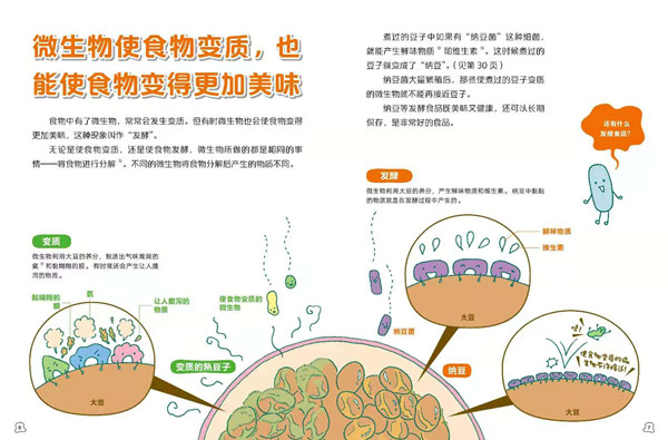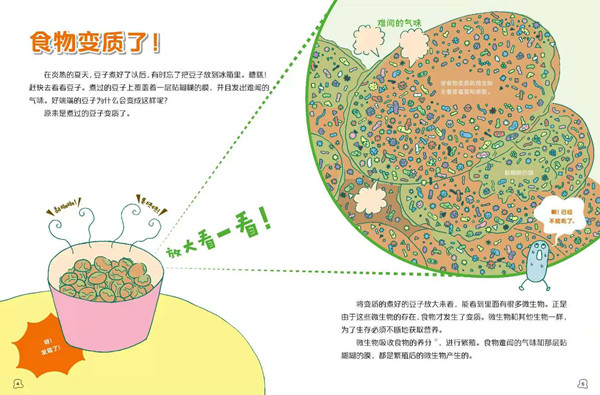 3.揭秘微生物如何影响地球的运转和生物的演化:如何让食物变美味或变质,让人维持健康或导致人生病。 帮助孩子养成良好饮食习惯和卫生习惯,培养爱护环境理念;