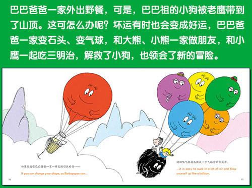 本书是巴巴爸爸诞辰50周年特别版,首次推出的巴巴爸爸双语故事系列。初级篇的12个独具创意和幽默的巴巴爸爸家庭故事,双语故事在一家人相亲相爱、互相关心,互相帮助中展开,为小读者营造出温馨、和睦的家庭氛围,传递出无尽的温暖与爱。穿越时空的童年经典,给孩子的中英双语启蒙:一句中文对应一句英文的编排方式,让孩子在爸爸妈妈的帮助下学习英语,给孩子磨耳朵的英文故事。想怎么变就怎么变的巴巴一家带你感受家庭的温暖与幽默。