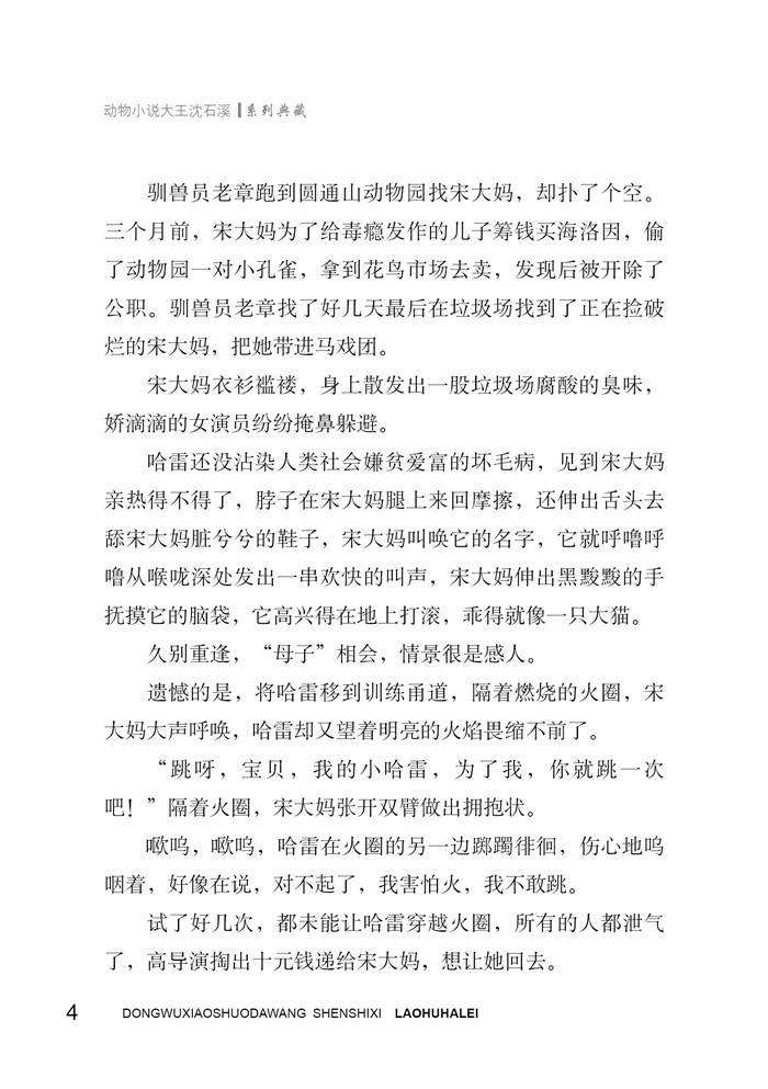 动物小说之所以比其他类型的小说更有吸引力,是因为这个题材最容易刺破人类文化的外壳和文明社会种种虚伪的表象,可以毫无遮掩地直接表现丑陋与美丽融于一体的原生态的生命。人类文化和社会文明会随着时代的变迁而不断更新,但生命中残酷竞争、顽强生存和追求辉煌的精神内核是永远不会改变的。因此,动物小说更有理由赢得读者,也更有理由追求不朽。