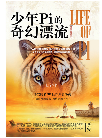 2.2012年11月下旬,国际导演李安执导的同名3D电影即将全球上映。早前在电影节放映后获得压倒性好评,被誉为“下一个《阿凡达》”。影评人称其有“《泰坦尼克号》的视觉特效、《阿凡达》的3D技术革命”。藉由电影的影响力,有望吸引更多的观众在走出影院后捧起原著小说,感受影像背后的文字之美。