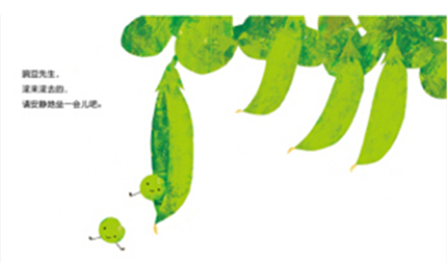 绘本语言应尽量做到贴近生活、浅显易懂,即口语化语言,比如拟声词为主的短句(在《咕噜咕噜》里面,全书都是以“咕噜咕噜”蔬菜滚下山坡的拟声词为主);带有问答互动的短句(如《洗澡啦,洗澡啦》里面,会不停地问:“谁是泥宝宝呀?”一问一答,带有强烈的互动游戏感); 1+1构架的简单句(如,名词+动词,——豌豆先生滚啊滚,形容词+名词——软软的扑扑);和生活紧密相关的句子(如,洗澡啦,吃光啦)。而太长复杂的句子、离生活太远的语言,无论写得多么动人,都不会吸引0-2岁的宝宝。同时,孩子在朗朗上口的趣味语言中养成了爱洗澡、吃蔬菜等生活好习惯。