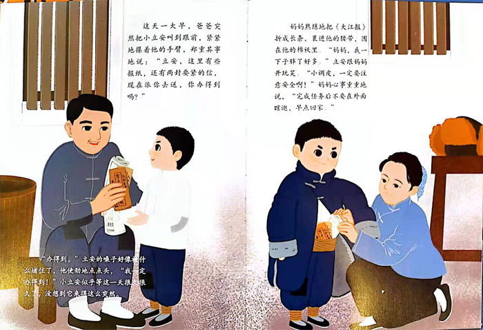 《小交通员》这本书为“中国红色经典绘本”选题之一。该书文字内容节选自陶承的回忆录《我的一家》。故事描述了在革命战争年代,地下党组织的斗争生活,刻画了小交通立安机智勇敢的人物形象,是对现在的学生进行革命传统教育的极好题材。《小交通员》一文曾入选小学语文教材,因其故事情节曲折生动,人物形象鲜明,深受广大小读者的喜爱,在社会上有较广泛的影响,因此以绘本的形式出版这一传统革命题材,既增强了可读性和趣味性,又能宣扬优秀的革命传统精神,实为好的教育方式。