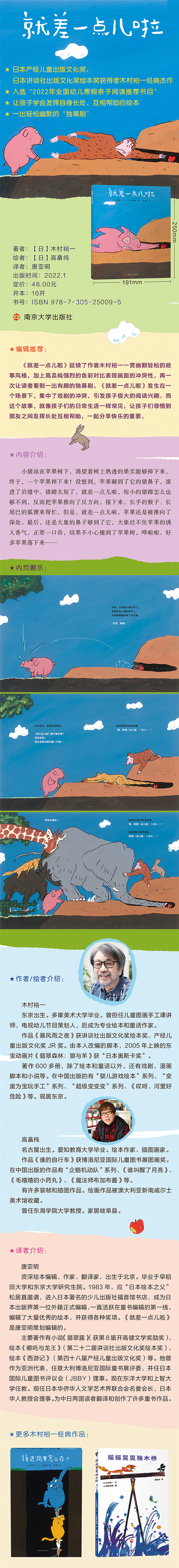 ★ 日本产经儿童出版文化奖、日本讲谈社出版文化奖绘本奖获得者木村裕一经典杰作 ★ 入选“2022年全国幼儿寒假亲子阅读” ★ 让孩子学会发挥自身长处、互相帮助的绘本 ★ 一出轻松幽默的“独幕剧”
