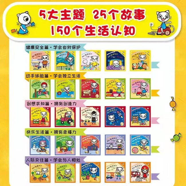 《Kiki猫成长记》是一套平装成长绘本,共25册。该套书由波兰知名绘本画家安妮塔·格罗温斯卡创作,在波兰国内外受到了小读者们的广泛喜爱。它累计销售册数超百万,是一套陪伴过百万宝宝、值得珍藏的畅销书。 本套书内含25个适合亲子共读的温馨故事, 5大层次纵深培养。紧扣2-6岁孩子发育关键期,在真实的情境中帮助孩子实现全方位成长。