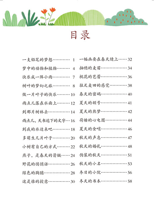 全书共收录张晓楠64首儿童诗,这些诗歌以四季特征、课堂学习、动物、乡村自然景观、乡村生活等主题为内容,生动活泼地表现了大自然的季节特征和童年的美好,赞美了大自然热烈奔放的生命力和美感,表达了对自然、生活和生命的热爱,有助于引导儿童进一步关注自然与生活中的美与趣味,提高对身边世界的审美情趣。诗歌风格或清新活泼,或幽默浅白,或宁静安详。诗歌语言亦谐亦庄,一方面以儿童之眼看世界,富有想象力与好奇心的童真童趣,另一方面又具有诗歌优美的语调与意境,比喻不落窠臼,新鲜有趣,适合儿童阅读。诗歌用词准确广泛,对中年级学生拓宽词汇有帮助。