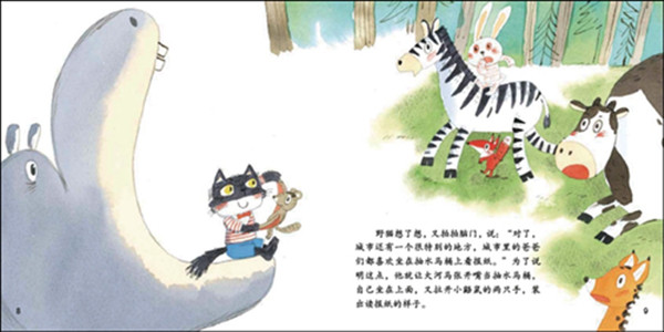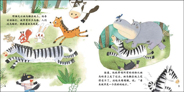 一只从城里来的野猫受到了动物们的热烈欢迎,他们向他打听城市里的事情。野猫让斑马躺在地上比划马路,用奶牛的图案比划地图,用大河马的嘴巴比划抽水马桶……这些都让动物们对城市的印象非常差,但是,城市真的是这样的吗?