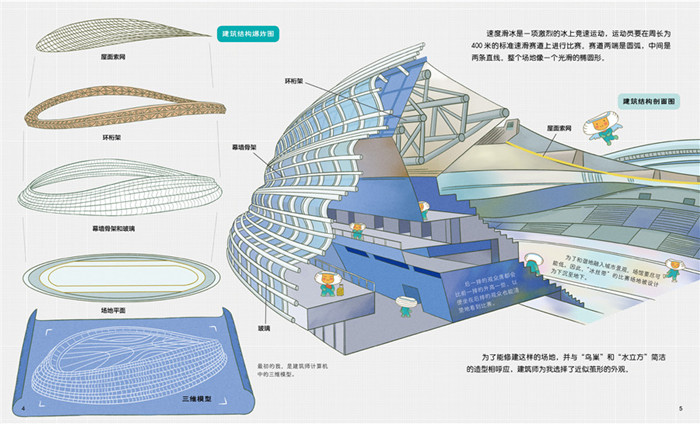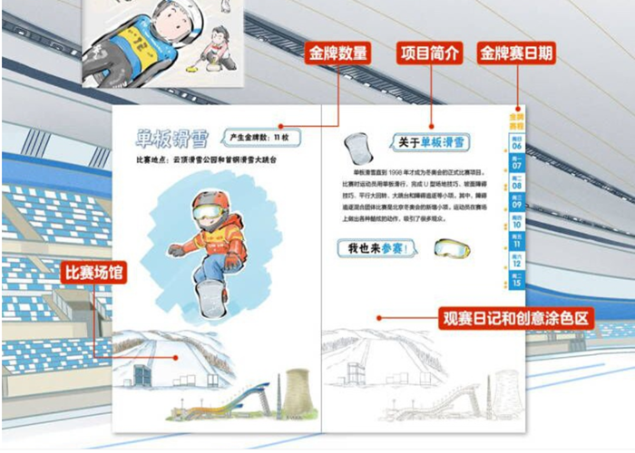 《冬奥场馆来啦 !》(冰丝带,就位+水立方,变身) 一套书两种打开方式,采用独特的前后双向阅读,从正面阅读让孩子了解冰丝带的建设过程;从反面阅读了解水立方变身冰立方的改造过程。冬奥建筑将在书的中间相遇,共构冬奥全景画卷!