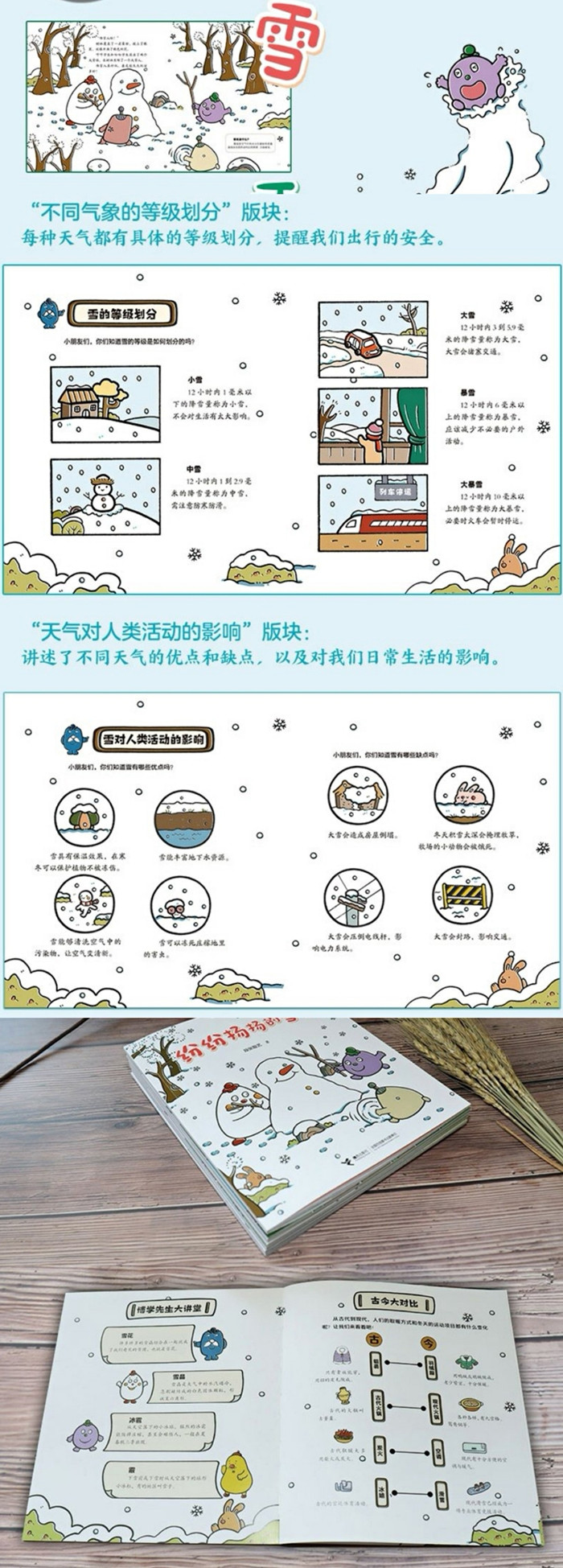 这个冬天下了一场大雪,哈哈学生和哼哼学生跑到外面玩雪,他们滑雪、堆雪人、打雪仗,玩的特别开心。这时他们的老师博学先生来了,因为雪太滑,博学先生不小心从坡上摔下来扭到了腰,哼哼学生和哈哈学生赶紧背着老师往圆圆医生家跑。幸好,大路上的雪已经被忙碌农夫清理了,他们于是加快速度把博学先生送到目的地。