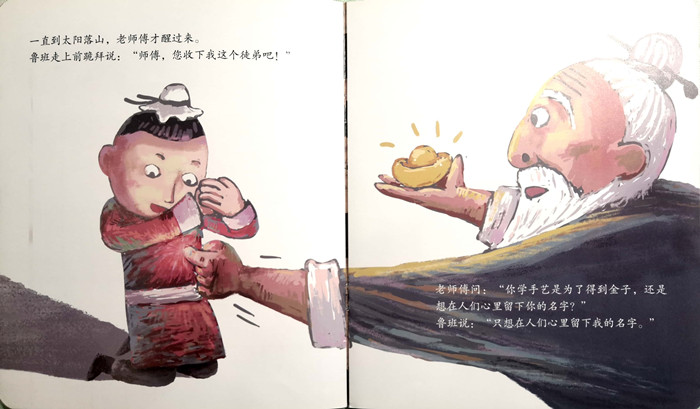 鲁班从小心灵手巧,热爱木匠手艺。他不远万里拜师学艺,用自己的诚心和努力通过了重重考验,终于打动了师傅。师傅将自己所有得本领都传授给他,让他学到了最精湛的技术。