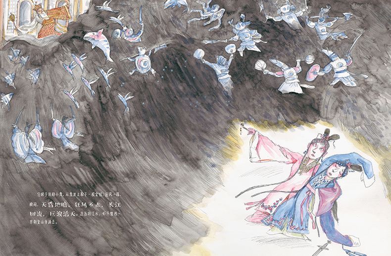 《这就是中国戏曲》从戏曲发展史,戏曲行当、服饰、道具、名家等戏曲知识为出发点,告诉孩子什么是中国戏曲。其余七本撷取中国经典戏曲故事里的精华,绘声绘色地展示了戏曲故事的形式之美与内在精髓。不仅用精美的手绘图展现戏曲的外在美,同时配以二维码,嵌入经典唱段的音频,让孩子们能身临其境地感受戏曲的内在美,再辅以画脸谱、设计服饰等延伸活动,全面激发孩子对戏曲的兴趣,从而了解戏曲,亲近戏曲,更好地领略传统艺术的瑰丽与神秘。