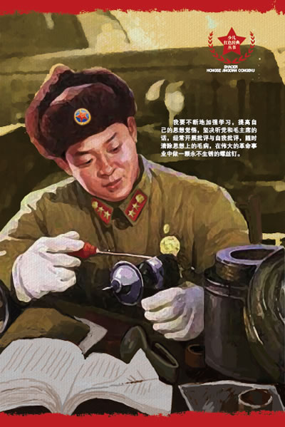 一个人的作用,对于革命事业来说,就如一架机器上的一颗螺丝钉。机器由于有许许多多的螺丝钉的连接和固定,才成了一个坚实的整体,才能够运转自如,发挥它巨大的工作能力。螺丝钉虽小,其作用是不可估量的。我愿永远做一颗螺丝钉。螺丝钉要经常保养和清洗,才不会生锈。人的思想也是这样,要经常检查,才不会出毛病。