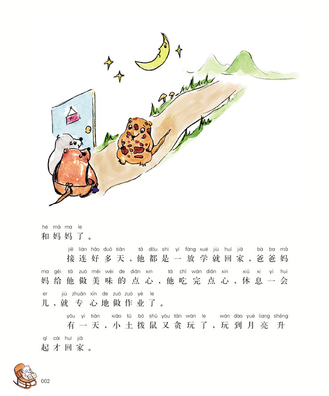 有一天,小土拨鼠又贪玩了,玩到月亮升起才回家。