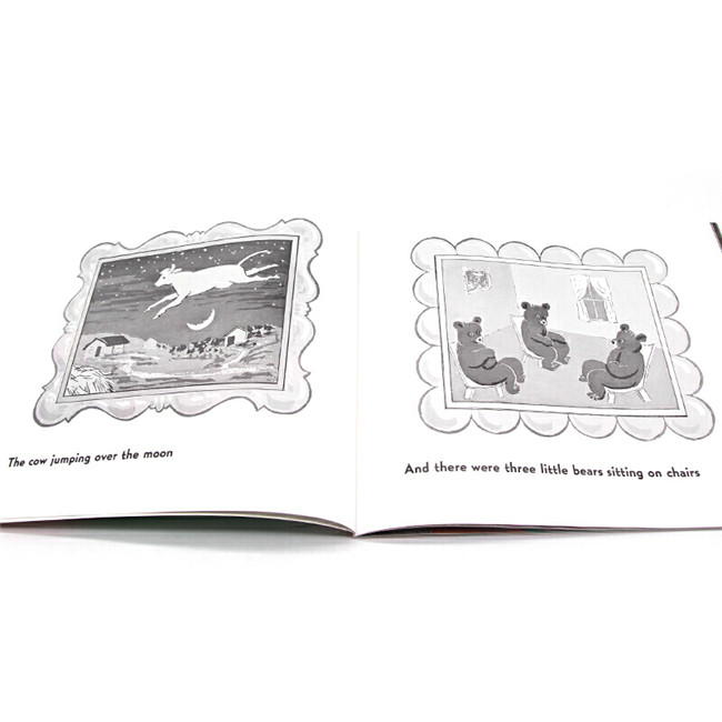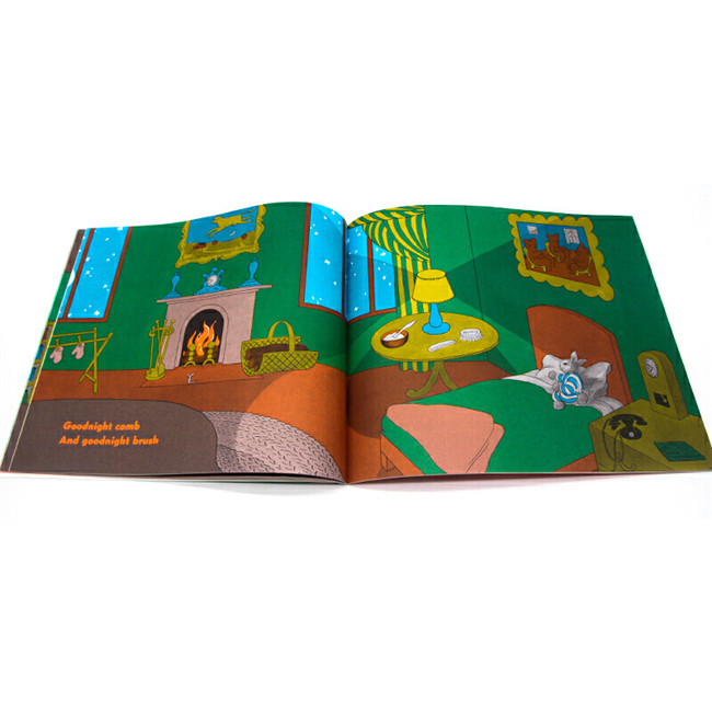在绿色的大房间里,一只小兔子躺在床上。"晚安,房间。晚安,月亮。”他向这个灯光柔和的和房间里的一切熟悉事物;三只小熊坐在椅子上的那幅画,座钟和短袜,小猫和手套,等等的所有东西,一一道晚安。Good night nobody...good night air......万籁俱寂,小兔安心的睡着,壁炉的火还在燃烧,小玩具屋的灯还亮着。好像留下对明天的期待和盼望。