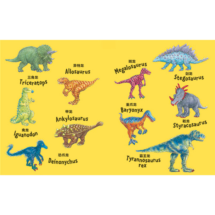★色彩鲜明的恐龙形象,极具震撼力的拟声词,轻快活泼的字体风格贯穿整套篇故事情节。