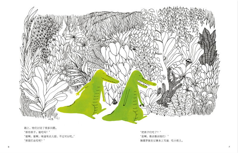 所以,《鳄鱼兄弟》就是这样一本会让孩子问更多“为什么”的绘本,是让你和孩子一起寻找那些答案的绘本。是的,不是那个答案,而是那些答案。这才是鳄鱼兄弟佩德罗和乔治想要讲给孩子们的故事。